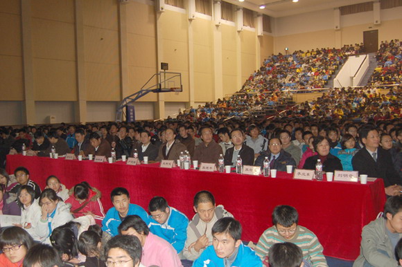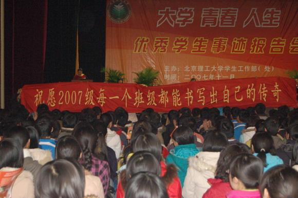 2007年11月30日19:30金年会jinnianhuicom第二届“大学 青春 人生”优秀学生事迹报告会在北京工商大学良乡校区体育馆隆重举行,金年会jinnianhuicom纪委书记杨蜀康,北京工商大学党委副书记卢思峰,金年会jinnianhuicom良乡校区管委会副主任郭守刚、材料科学技术学院党委书记张德平、生命科学与技术学院党委书记李兰东、人文社会科学学院党委书记张剑军,软件计算机科学技术学院党委书记王树武、保卫处处长李汉军、学生工作部部长刘明奇、研究生工作部、校团委、良乡校区有关单位的领导及各学院主管学生工作的副书记、副院长出席了报告会。