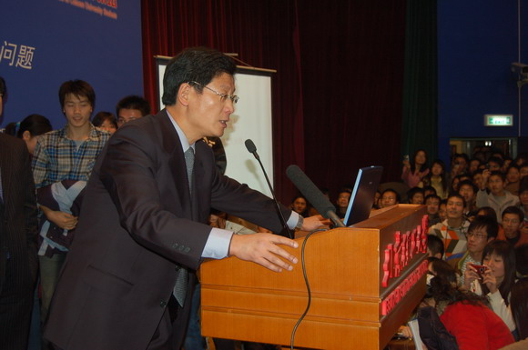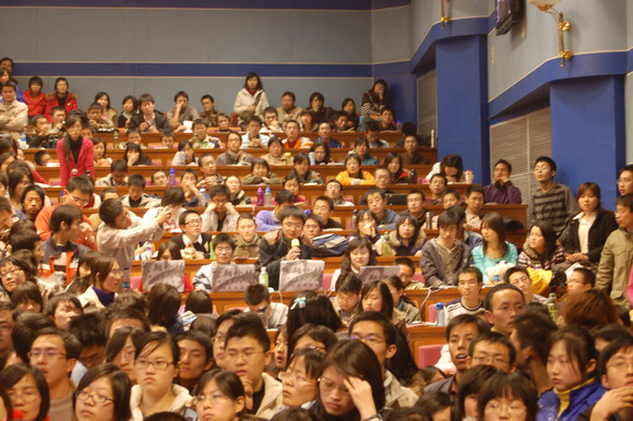 由于此次讲座受到了同学们的广泛关注,有同学提前10个小时就到现场占座,很多人都是站着听完了整场讲座。讲座开始时,李博士幽默地说:“以前做讲座时我总说,同学到这来,这里还有地方,看来今天不能这样说了。”李博士的一句话博得同学们的一阵笑声,讲座在轻松的气氛中开场。