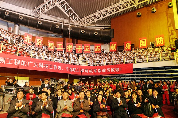 12月12日下午,我国首次月球探测工程圆满成功表彰大会在我校体育文化综合馆隆重举行。表彰大会由国防科学技术工业委员会主办,旨在表彰先进,激励斗志,动员、团结和凝聚各方面力量,进一步组织实施好月球探测工程,为航天事业和国防科技事业做出新的更大贡献。会上,人事部、国防科工委、国资委、总装备部和中国科学院联合对在我国首次月球探测工程研制、建设、发射、测控和科学应用等各项任务中做出突出贡献的单位和个人进行表彰,授予国防科工委月球探测工程中心等22个单位“首次月球探测工程突出贡献单位”称号;授予栾恩杰等200名同志“首次月球探测工程突出贡献者”称号。