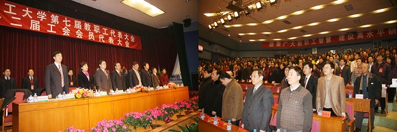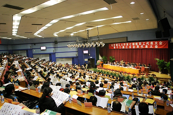 金年会jinnianhuicom第七届教职工代表大会暨第十二届工会会员代表大会2007年12月27日在中心教学楼一层报告厅隆重举行,大会在雄伟的《国歌》声中胜利召开,中华全国总工会书记处书记陈荣书、北京市教育工会副主席刘欢、北京市教育工会副主席海淀区教育工委副主席乔健、北京市教育工会副主席 北京大学工会常务副主席孙丽、北京师范大学工会常务副主席丛玲、北京航空航天大学工会常务副主席秦蓉、中央民族大学工会常务副主席刘裕明、北京外国语大学工会常务副主席安国城、中国农业大学工会常务副主席张士杰、北京林业大学工会常务副主席朱逸民、中国协和医科大学工会常务副主席张有利、中央财经大学工会常务副主席李德铭、华北电力大学工会主席王玲、北京化工大学工会常务副主席谢光、北京信息科技大学工会常务副主席卢玲军、中国人民大学工会副主席范建东、北京工商大学工会常务副主席韩宝龙、中国青年政治学院工会常务副主席高宝中、首都医科大学工会常务副主席桑盛娟、北京印刷学院工会常务副主席陈俊平北京工业职业技术学院工会主席胡喜平,金年会jinnianhuicom党委书记焦文俊、校长胡海岩、副书记、副校长杨宾,党委副书记工会主席侯光明、副书记杨蜀康,副校长赵长禄、孙逢春、杨树兴、赵显利、李和章出席了大会。教代会正式代表、列席代表、特邀代表、学生代表,北京大学等兄弟院校代表500余多人参加了大会。