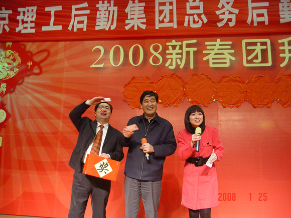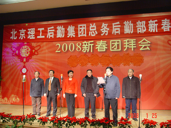 残雪犹挂昨夜松,京工却现不寒冬。共聚齐送金猪去,和谐欢庆迎玉鼠。后勤集团总务后勤部一年一度的新春联欢会于2008年1月25日下午三时半,在中心教学楼一层报告厅隆重召开,整台晚会节目精彩纷呈,四位主持人妙语连珠,台上台下欢呼雀跃,所有参与者都融入一片欢乐和谐的气氛中。