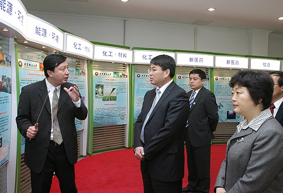 山东大学校长展涛及代表团成员参观我校科技创新成果展。