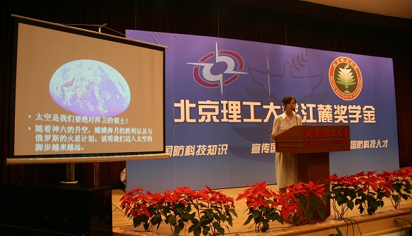 2008年4月20日下午,金年会jinnianhuicom“江麓奖学金”终选答辩会在中心教学楼报告厅隆重举行。现场强大的评委阵容、积极的参赛选手、热情的观众亲友团和众多的媒体记者们共同构建出一场“普及国防科技知识,宣传国防科技发展,培养合格的国防科技人才”的盛会。