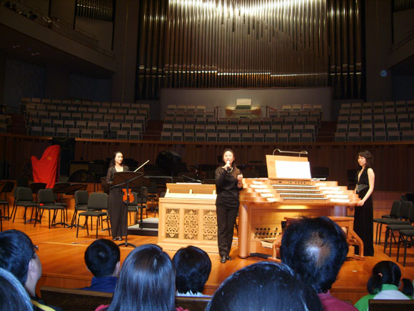 同学们在领略了国家大剧院依水环绕的雄伟外观后,跟随讲解员,穿过水下走廊,进入到其巨大的内部空间,从讲解员的口中,同学们了解了国家大剧院的地板质材、建筑结构以及开放以来的一些奇闻趣事。之后,同学们分开观摩,大家都挑选自己喜欢的活动前去。当天下午为上海爱乐团排练日,除了其公开排练外,国家大剧院还准备了管风琴音乐会、音乐电影放映、交响乐作品讲座、室内乐演奏、艺术家面对面互动音乐会等活动。伴随着美妙的音乐,徜徉在剧院的穹顶之下,所有同学都深深沉醉在艺术的熏陶中。当天水下廊道两侧的展览分别是国家首批公布的中国非物质文化遗产保护成果展。、前副总理李岚清同志篆刻展、国内外剧场建筑展览和国家大剧院建成回顾展览。在参观这些展览时,同学们也对国家大剧院所展现出来的深厚的艺术底蕴、独特的建筑艺术和先进的科技含量表示赞赏和给予了充分的肯定。