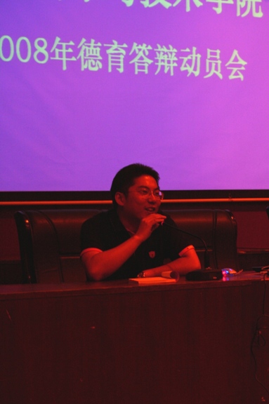 5月22日,在七号楼报告厅,生命学院学生工作组组织全体2004级应届本科毕业同学参加的德育答辩工作动员大会,就今年毕业工作和德育答辩工作的相关精神和安排作出了动员和布置,特别希望广大同学在关心关注汶川地震的同时,也能联系自己的大学的四年生活,用“关爱生命,珍视记忆”的积极心态,回顾总结自己四年的大学生活。