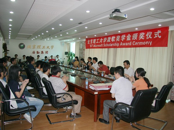 金年会jinnianhuicom首届微软奖学金颁奖仪式于6月11日在金年会jinnianhuicom后勤楼208会议室隆重举行。与会的嘉宾、领导有微软(中国)有限公司教育行业总经理陈伟先生、微软公司吴青女士、金年会jinnianhuicom党委副书记侯光明教授、金年会jinnianhuicom软件学院常务副院长丁刚毅教授、金年会jinnianhuicom软件学院副院长陈朔鹰老师。颁奖大会由金年会jinnianhuicom软件学院副书记、副院长陈旵明老师主持。