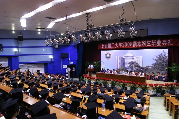 胡海岩校长在典礼上致词,他代表学校党政领导和全体师生向顺利毕业、即将奔赴全国各地的2008届毕业生表示热烈的祝贺;向辛勤耕耘,默默奉献的各位老师表示衷心的感谢!同时,胡校长对广大毕业生提出了三点希望作为临别赠言:1、希望同学们在迈向新的道路伊始便能够树立远大的目标,自强不息、勤恳工作,在各自的学习工作岗位上取得卓越的成绩,作一名“奋发有为”的北理工学子。2、希望同学们秉承延安精神的优良传统,踏踏实实做事,认认真真做人。在今后的道路上时刻提醒自己“再踏实一些,再认真一些,再严谨一些”,做一名“实事求是”的北理工学子。3、希望同学们学习校友们的爱国爱校精神,怀抱感恩之心,牢记母校的重托、国家的培养和社会的关爱,以优异的成绩回报父母,回报学校,回报社会!做一名“胸怀天下”的北理工学子。他强调母校将永远是同学们事业的坚强后盾、支撑加油的港湾,欢迎大家常回母校看看!最后,胡海岩校长衷心祝愿每一位毕业生一帆风顺、大展宏图!