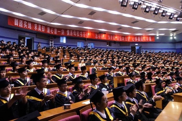 礼堂内多次响起雷鸣般的掌声,这掌声代表了毕业生对学校培育之恩的感谢和对未来的憧憬,更代表了毕业生对母校依依惜别的深情和对母校美好明天的祝福。