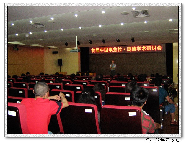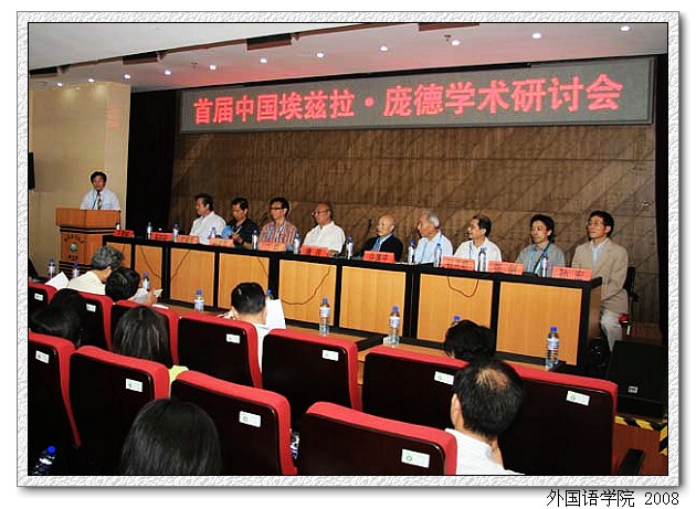 6月21日—23日,首届中国埃兹拉•庞德学术研讨会在我校图书馆报告厅召开。这次大会由金年会jinnianhuicom外国语学院、北京外国语大学英语学院和中国人民大学外国语学院联袂主办,来自国内外30多所高校和研究机构的代表出席了研讨会,其中有著名的专家学者中国作家协会屠岸教授、北京大学许渊冲教授、中国社会科学院江枫教授、四川大学赵毅衡教授、新奥尔良大学钱兆明教授、美国关岛大学常耀信教授等。