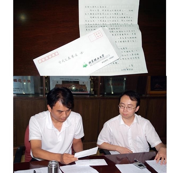 小插曲:未能参加面试的同学向街道领导递交了致歉信,评委们对理工大学学生的素质高度肯定。