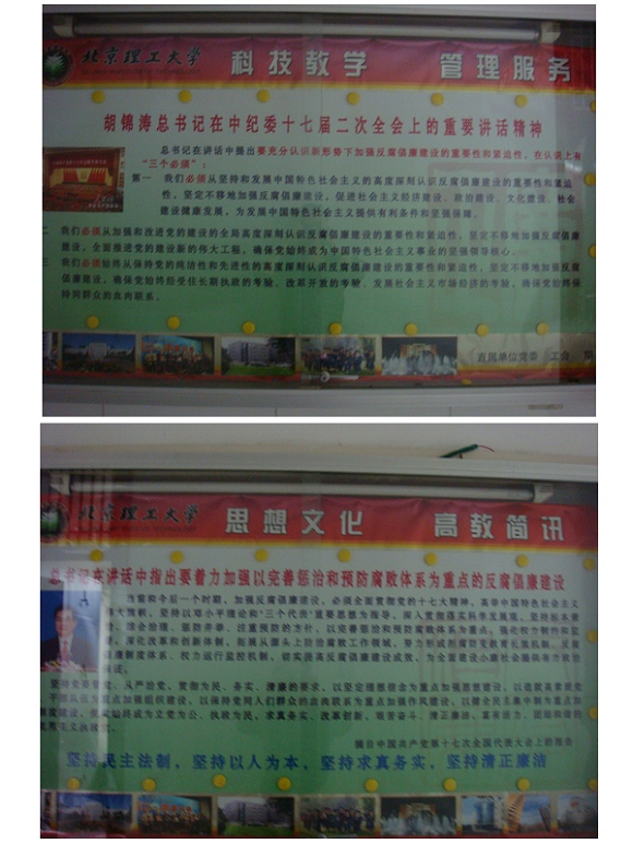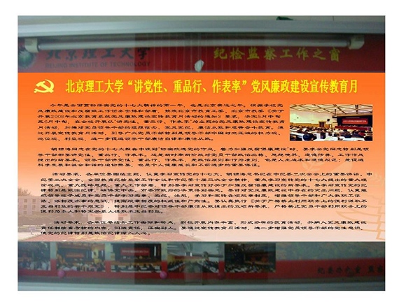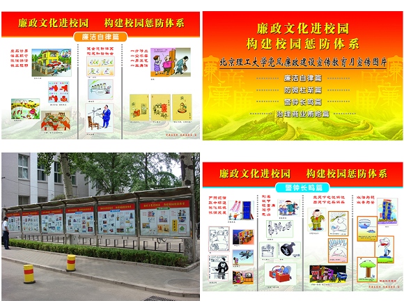 在学校党风廉政宣传教育月活动期间,充分运用宣传橱窗、新闻网、广播电台、闭路电视等宣传阵地,将党风廉政建设宣传教育渗透到丰富多彩的校园文化建设之中,在全校党员干部中掀起讲党性、重品行、作表率之风,营造良好的宣传教育氛围。