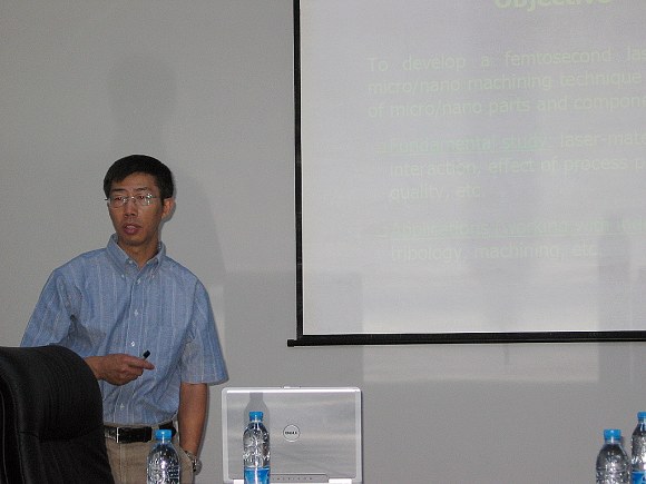 Shuting Lei博士做题为“Micro/Nanoscale structuring and modification using femtosecond laser”的学术报告,介绍了美国堪萨斯州立大学在激光微/纳加工方面的研究进展,Shuting Lei博士在微/纳材料热传导领域有丰富的研究经验,他的报告既前沿又生动有趣。