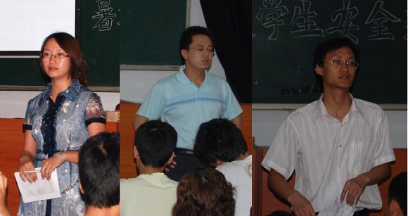 贾利军老师向同学们通报了学校和学院暑假期间的工作安排,指出今年暑期是奥运会召开的关键阶段,学校和学院为迎接奥运会的成功举办作了系统的安排,暑期留在学校的同学绝大多数是奥运志愿者,希望同学们在保持服务奥运热情的同时一定要唤醒更强的安全意识,从严格自律做起,遵守校规校纪,消除宿舍安全隐患;要求所有留校学生特别是学生党员和学生干部要有民族荣誉感和责任意识,注意自身形象,关心集体关心同学;同时也希望同学们在生活中遇到困难时能够及时向学院老师求助,学院领导和辅导员老师一定会尽力为同学们排忧解难。