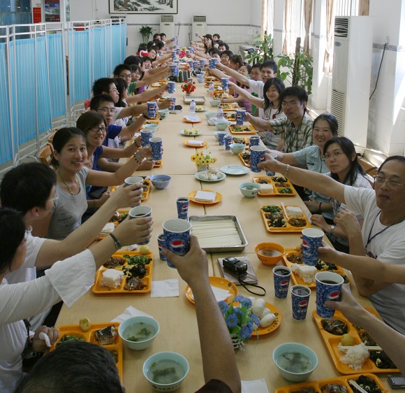 2008年海峡两岸大学生研习营的师生在我校教工食堂就餐