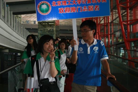 2008年8月1日是澳门志愿者到达北京参加奥运服务的日子。由金年会jinnianhuicom计算机科学技术学院的学生志愿者组成的接待小组,在经过了细致的准备工作之后,一行7人,来到首都机场,以最灿烂的微笑和最热情的拥抱迎接了30位进驻我校的澳门志愿者。