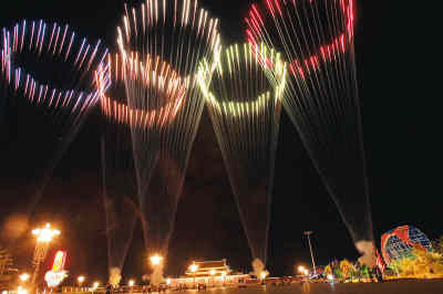赵老师告诉记者,以前各届奥运会均有奥运标识被应用到焰火的燃放,但是,“基本上都是将火药装在已经摆好的固定的发射装置里,同时点火”,以便在天空中制造出静态的奥运五环效果。