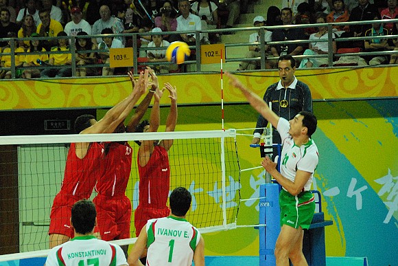 经过激烈奋战,保加利亚男排(白方)最终以3:1战胜委内瑞拉男排(红方)。