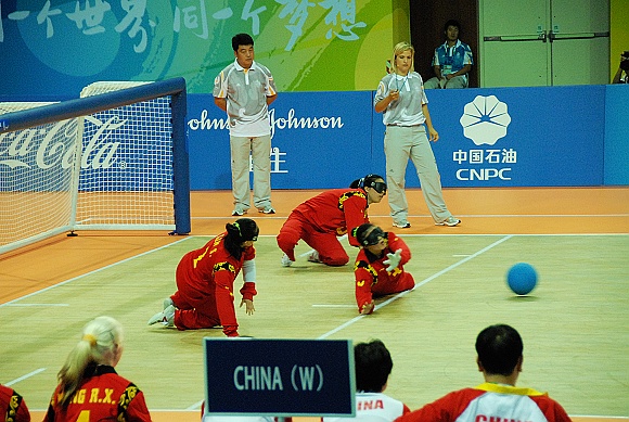 经过激烈奋战,中国女子盲人门球队最终以3:0战胜了德国女子盲人门球队,取得了两连胜的佳绩。