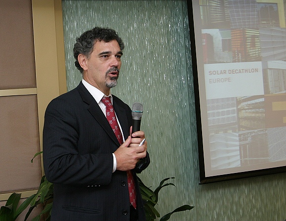 随后,马德里理工大学副校长Jose Manuel Paez向大家演示介绍了“太阳能房屋十项全能竞赛”的举办目的、内容以及马德里理工大学设计制造太阳能房屋参加此项竞赛的过程。