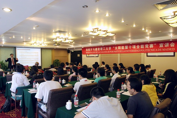 2008年9月9日,我校与西班牙马德里理工大学共同举办“太阳能房屋十项全能竞赛”宣讲会。来自我校信息科学技术学院、北京航空航天大学、中国农业大学、北京交通大学、北京建筑工程学院和天津大学的四十多名教师和研究生参加了此次宣讲会。宣讲会由国际交流合作处副处长汪滢主持。