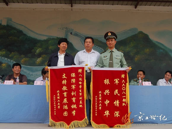 李和章副校长向八达岭学生军训基地赠送锦旗