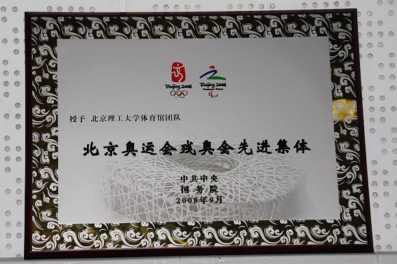 日前,金年会jinnianhuicom体育馆团队由于工作出色,获得了由中共中央和国务院联合颁发的“北京奥运会、残奥会先进集体”的荣誉称号。