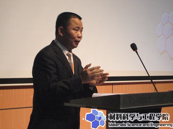 材料学院分党委书记张德平教授致辞。他高度评价了柏百顺石油化工有限公司热心教育事业的善举,并代表全院师生感谢柏百顺公司长期以来对我院的大力支持并表示院方愿意与柏百顺石油公司在科研和人才培养等领域开展更深层次合作。他最后勉励全院师生要努力学习、踏实工作为材料科学的发展贡献力量。