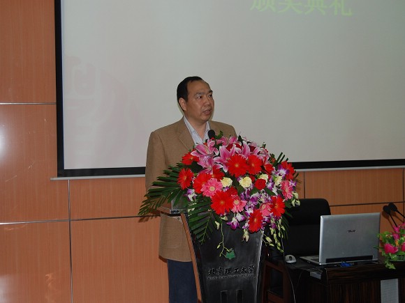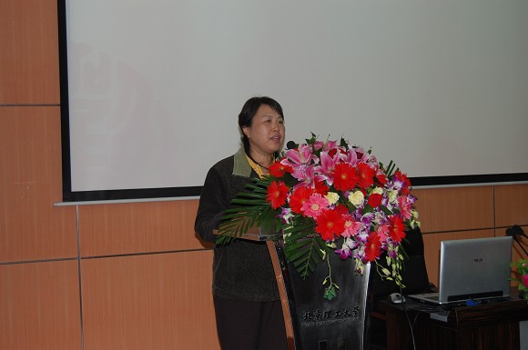 王悦音副院长首先代表基础教育学院致辞。她对化工与环境学院设置SCEE奖学金用以鼓励学生好好学习的做法表示赞赏,对学院领导重视本科基础教育表示钦佩,对获奖学生与班级表示祝贺。最后她以胡锦涛总书记对青年学子的“四个希望”来勉励在场学生,祝愿他们在大学学习中取得好成绩。