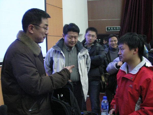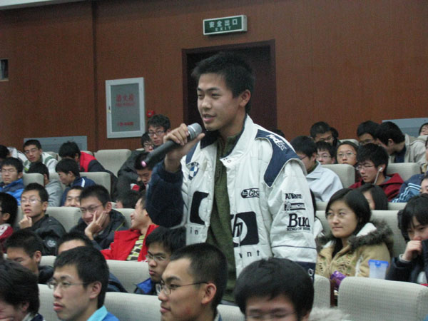 讲座结束后,丁教授又回答了部分学生的提问。在回答“若我们想参与此类科研活动应注意自身发展的哪些方面并如何规划自己的专业素质”这个问题时,丁教授强调我校为学生提供了很多此类平台,如学生创意平台和专业实验室等,并告诉大家首先要有参与的激情,然后还必须具备算法、编程等的坚实基础。