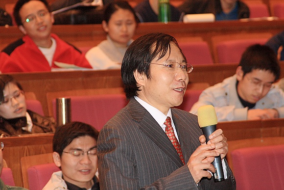 2009年3月19日下午,由研究生院主办,理学院承办的第十期“名家讲坛”在中心教学楼报告厅成功举办。本次“名家讲坛”邀请到国际著名数学家、中国科学院院士、美国科学与艺术院院士、全国政协常委田刚教授进行了题为“几何与分析”的精彩学术报告。学术报告由我校名誉校长王越院士主持。研究生工作部部长郝洪涛,理学院党委书记何明,院长胡长文,数学系主任杨国孝以及全校五百余名师生到场聆听田院士的学术报告。