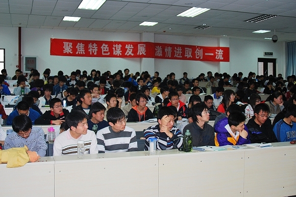 常务副院长张青山的讲话主要围绕学院2009年的工作要点,指出学院将不断加强学生思想政治教育,抓好学风建设,营造良好育人环境,促进教学改革,提高教学质量,加大实验室开放力度,搭建试验创新平台等,通过各项工作提高学院人才培养质量。随后的1个多小时,32个会场的同学收看了由中央党校图书馆馆长肖勤福教授主讲的学习实践科学发展观辅导光盘,共同聆听了肖勤福教授对科学发展观的内涵、意义和此次学习实践活动的基本要求、目标的论述和讲解。