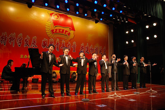 合唱团同学表演了男声小合唱《达坂城的姑娘》,他们用悠扬的歌声将全场观众带进一个艺术的殿堂。