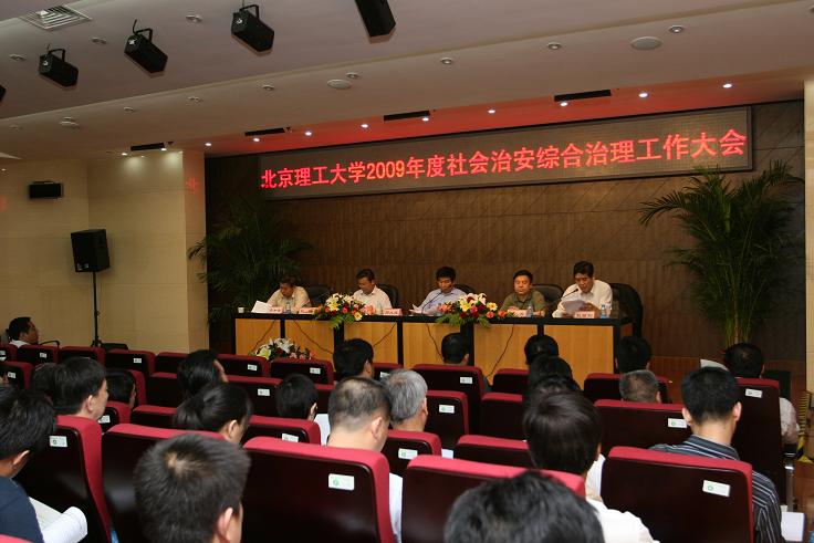 校党委书记郭大成做了重要讲话。他指出学校党政领导高度重视综合治理工作,2009年是一个特殊年,校园安全稳定的任务责任重大,各单位要认清当前形势特点有针对性地开展工作。强调各位领导干部要增强使命感、责任感,利用现阶段学习实践科学发展观时机,认真分析本单位、本部门所面临的实际情况,居安思危,警钟长鸣,增强忧患意识,切实以强烈的责任感和使命感积极履行好自己的安全职责;同时要真抓实干,做到思想落实、组织落实、责任落实、措施落实、科学谋划,处理好改革、发展和稳定的关系,抓住重点,深入推进和谐校园建设。