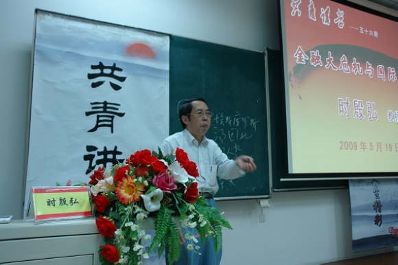5月19日晚上7点,共青讲堂第56期在研究生楼302教室开讲,本期嘉宾是中国人民大学美国研究中心主任、国际关系学院教授时殷弘,他为同学们解析金融大危机下的国际形势和当前世界格局下的中国发展展望。时教授的讲座从历史讲起,从文化、艺术、哲学等领域全面剖析了金融危机条件下的国际格局变化,使理工科背景的同学能从全新的角度认识金融危机。