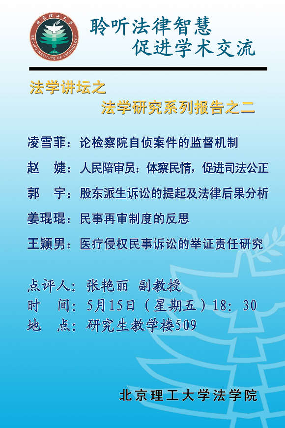 理公明法法学讲坛之研究生报告会的顺利闭幕,活跃了学术气氛、增进了学术交流,为法学院的研究生学术创新以及整个学院的科研教学都有重要作用!
