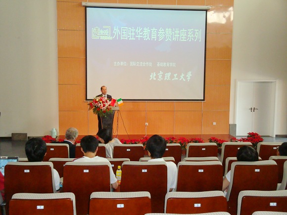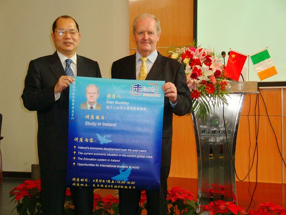 2009年6月12日下午,“外国驻华教育参赞讲座系列”之爱尔兰驻华参赞讲座在我校良乡校区举行。爱尔兰驻华大使馆商务参赞Alan Buckley先生就爱尔兰的经济、教育和中爱教育合作等专题发表了演讲。国际交流合作处王庆林处长主持报告会。