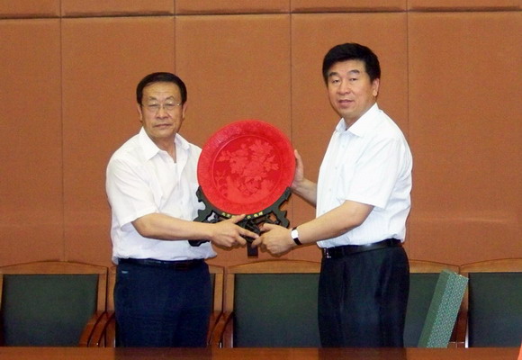 郭大成书记代表学校向鄂尔多斯市政府赠送纪念品