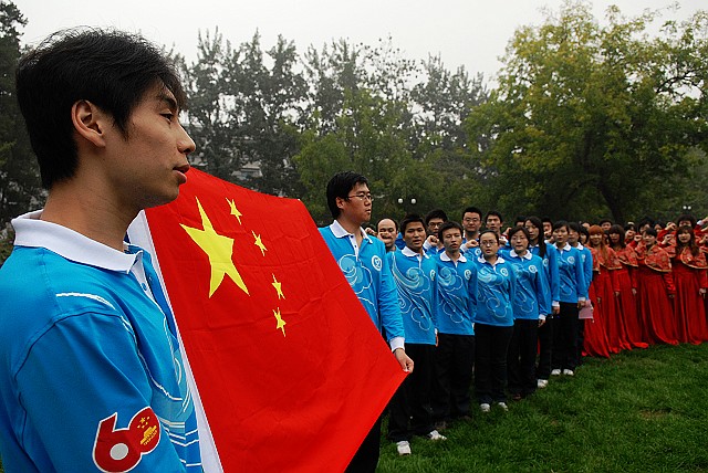 在化工学院2007级学生王振铎带领下,全体参与国庆庆典表演和服务工作的志愿者面对国旗,以青春之名庄严宣誓:“明天在天安门广场,全世界认为我们就是中国青年的形象。我们绝不会辜负父母亲友的期望,我们绝不会辜负师长同学的期望,我们绝不会辜负祖国人民的期望,我们要把最好的形象展示在国庆盛典之上,我们要用加倍的努力让祖国更加繁荣富强,我们必将汇聚青春的点点荧光,铸就成中华明日的一轮朝阳。”