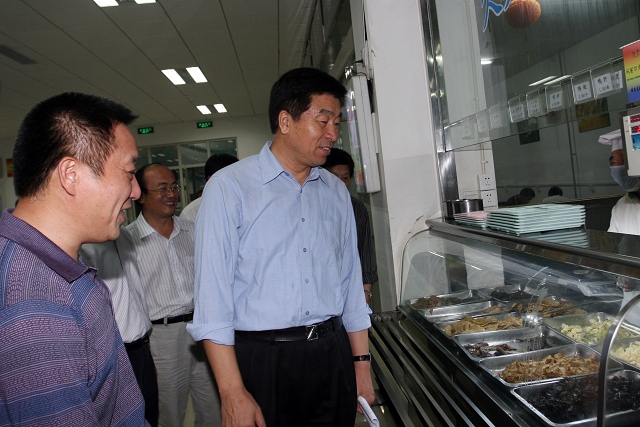 9月30傍晚,校党委书记郭大成,副书记、副校长杨宾在相关职能部门负责人的陪同下,分别到校学生食堂、学生公寓、保卫处对在岗职工进行了亲切地慰问。