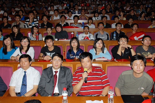 上午7:00,在中关村和良乡两个校区的24间教室和食堂里,技术人员正在反复的调试设备,将连接电视信号的线路接在位于讲台的操作台上,打开投影仪,看看声音大不大,试试图像清不清楚。