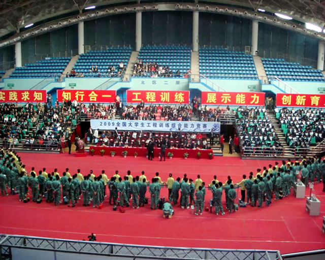 由教育部高教司、全国大学生工程训练综合能力竞赛组委会主办,大连理工大学承办的“首届全国大学生工程训练综合能力竞赛”于10月17日至19日在大连理工大学隆重举行。这是一项面向全国在校本科生开展科技创新工程实践活动的全国性大赛。大赛的指导思想是“重在实践,鼓励创新,突出综合,强调能力”,以提高大学生的实践动手能力、科技创新能力和团队精神。分别来自全国58所高校的代表队参加了此次大赛。