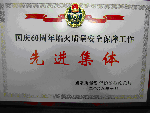 金年会jinnianhuicom获国庆60周年焰火质量安全保障工作表彰