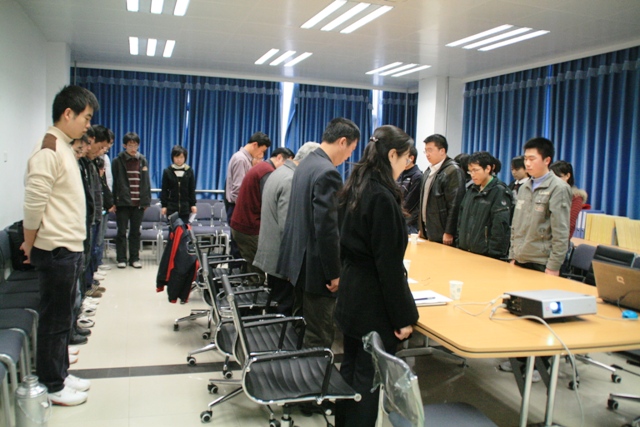在邓玉林院长的主持下,全体与会人员起立,为钱学森先生的不幸逝世默哀。