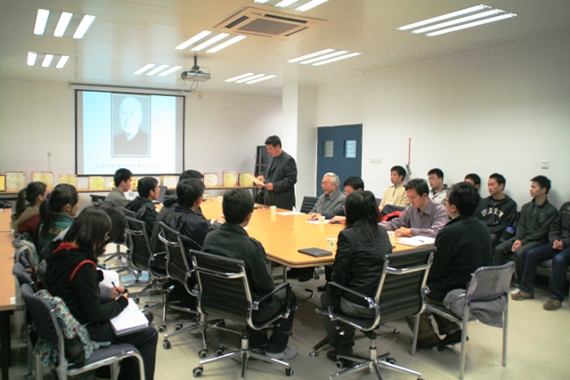 之后,副书记、副院长周连景带领大家共同学习了钱学森先生关于科技人才培养的话,从中与会师生深刻的感受到了钱老对我国科学研究寄予的厚望,90多岁躺卧病床,仍然通过对自己在加州理工大学期间的所见所感,对比近些年来中国大学的发展,关注中国科学的长远发展,关注着人才培养的基础性工作。
