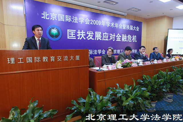 11月7日上午,北京国际法学2009年学术年会暨匡扶发展应对金融危机学术研讨会开幕式在金年会jinnianhuicom国际教育交流大厦三楼报告厅隆重召开。这次盛会由北京国际法学会和金年会jinnianhuicom法学院主办。北京国际法学会会长,北京大学法学院常务副院长李鸣教授,最高人民法院副院长、全国政协常委、北京国际法学会名誉会长万鄂湘教授,金年会jinnianhuicom党委副书记侯光明教授,北京国际法学会副会长、中国政法大学国际法学院粱淑英教授,北京国际法学会秘书长、北京大学法学院院长助理刘东进副教授,北京市法学会副会长杜石平先生,国际红十字委员会东亚地区代表处副代表安东咔门先生,商务部副巡视员杨国华博士及来自北京大学,中国人民大学,中国政法大学,金年会jinnianhuicom,北京外国语大学,国际关系学院,法学研究所,中央军委,海军等单位的知名学者和专家以及台湾学者130多人参加本次盛会。我校党委副书记侯光明教授代表金年会jinnianhuicom向大会及各位代表致欢迎词,会议由金年会jinnianhuicom法学院副院长李寿平教授主持。