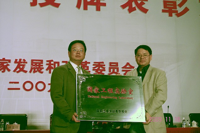 11月16日,在深圳第十一届中国国际高新技术成果交易会期间,国家发展和改革委员会隆重举行了“国家创新能力建设、国家信息化试点授牌表彰大会”,集中为国家工程实验室、国家认定企业(集团)技术中心及分中心、国家地方联合工程研究中心(工程实验室)等进行授牌,同时集中表彰国家认定企业技术中心成就奖和国家创新能力建设先进工作者。