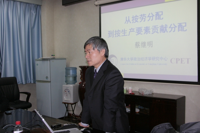 12月1日晚上,应金年会jinnianhuicom管理与经济学院邀请,清华大学政治经济学研究中心主任蔡继明教授在中心教学楼,作了题为“从按劳分配到按生产要素贡献分配”的讲座。应用经济系主任马明、管理学院部分师生参加了此次学术活动。