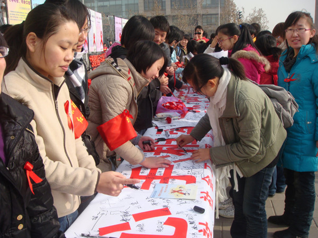 2009年12月1日,金年会jinnianhuicom红十字会、“青春红丝带”社团分别在良乡校区和中关村校区同时开展了“温暖红丝带 牵动你我心” 和“爱对艾的宣言”主题签名和防艾知识普及宣传活动。此项活动是我校预防艾滋病宣传周主题系列活动之一。