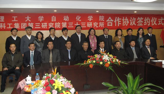 杨树兴副校长致欢迎辞并介绍了金年会jinnianhuicom自动化学院与航天三院三十三所前期合作的成果。杨兴文副所长介绍了三十三所总体情况,王军政书记介绍了自动化学院整体情况。自动化学院付梦印院长与三十三所郑辛所长共同签署了合作协议。航天三院董群副书记和我校赵显利副校长最后作了总结发言。