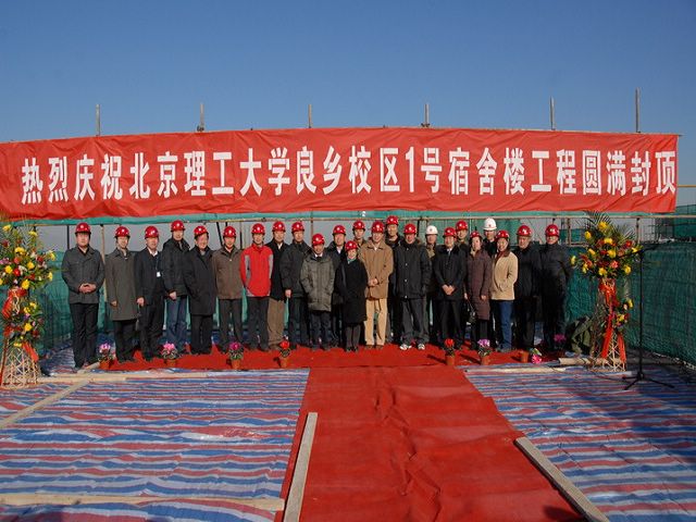副校长赵平对1号楼工程给予充分肯定,希望1号宿舍楼工程力争北京市结构长城杯。校党委副书记、副校长李和章对长期支持良乡校区建设的高教园区管委会、房山区建委表示了感谢,并对施工单位和监理公司提出要求,希望为北理工再创优质工程。房山区建委代表蔡春生,中建三局北方公司总经理陈卫国,监理公司总监张保忠等先后在仪式上发言。